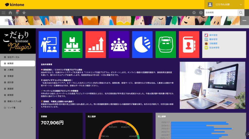 - 営業部には「営業部メニュー」を、管理部には「管理部メニュー」を初期表示、といった部署別カスタマイズが可能に