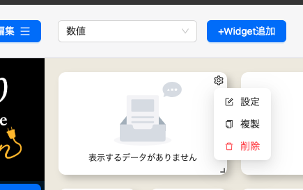 ③生成された数値ウィジェットの歯車アイコンをクリックして設定画面を開きます