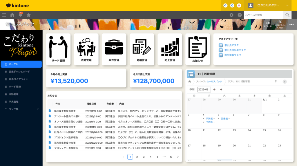 本記事では、こだわり kintone プラグインの新機能「数値ウィジェット」を使って、売上合計や平均値など重要な数値をポータルに大きく表示する方法をご紹介します。